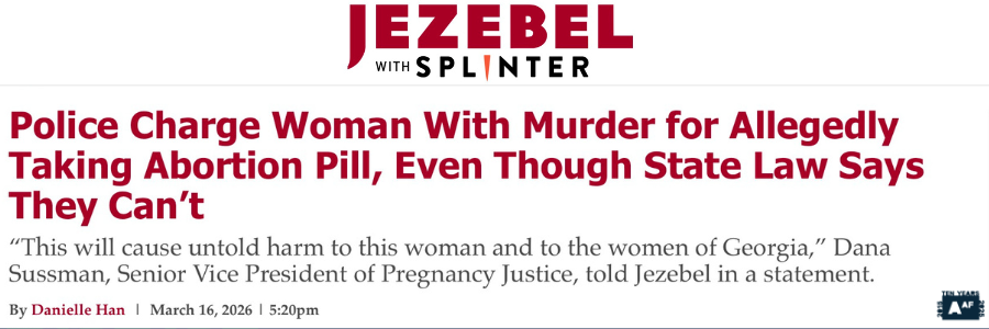 Georgia is, once again, doing the most worst by charging a woman with MURDER for allegedly using abortion pills… even though the law literally says they can’t. That’s right — Georgia is conveniently ignoring their own state law that disallows criminalizing ending a pregnancy in order to, idk, prove what total assholes they are? Punish women and pregnant people just to satisfy their extremist circle jerk cred? We expect this shit from the statehouse, full of arrogant demagogues, so the real kick in the dick is who reported this woman to local police: the hospital staff, where she sought help for pain. Yes, the folks WHO HAVE NO LEGAL OBLIGATION TO REPORT AN ABORTION TO POLICE (any and everyone can order telehealth abortion pills) but do have a duty to care for their patients, chose instead to be dirty fucking snitches. Say it with us: nobody talks, everybody walks.