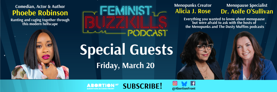 • Pod with us! Subscribe to our hilarious weekly abortion podcast Feminist Buzzkills Drops Fridays wherever you pod