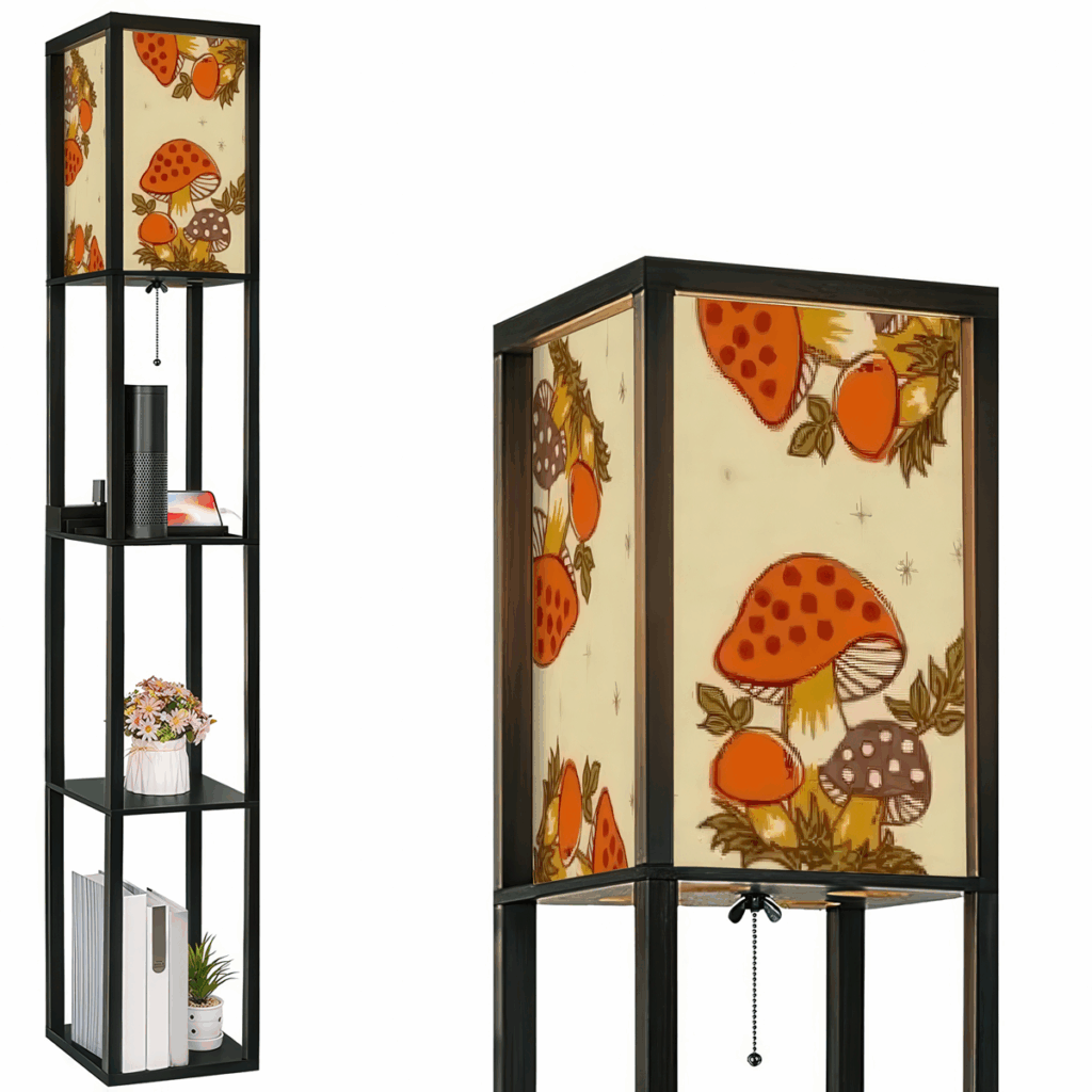 Fungi loving friends will freak out for this 70’s-inspired mushroom lamp with built-in shelves.