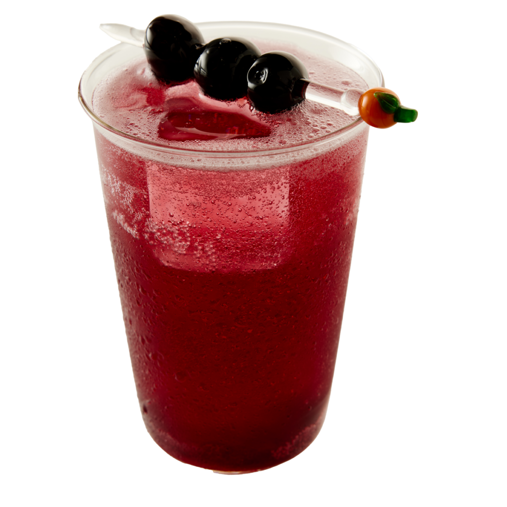 - Add Lambrusco and 100% pomegranate-cranberry juice.