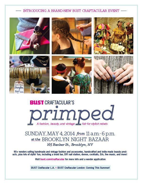 Primped begins at 11AM, goes until 6pm and will be held in the Brooklyn Bazaar space, at 165 Banker Street, Brooklyn. There’s a ton to see, hear, and do, including hair chalking, crafty shopping, nail art, massages, DJs, and braid styling/bang trimming at the Fringe Salon Braid N’ Bang Bar!