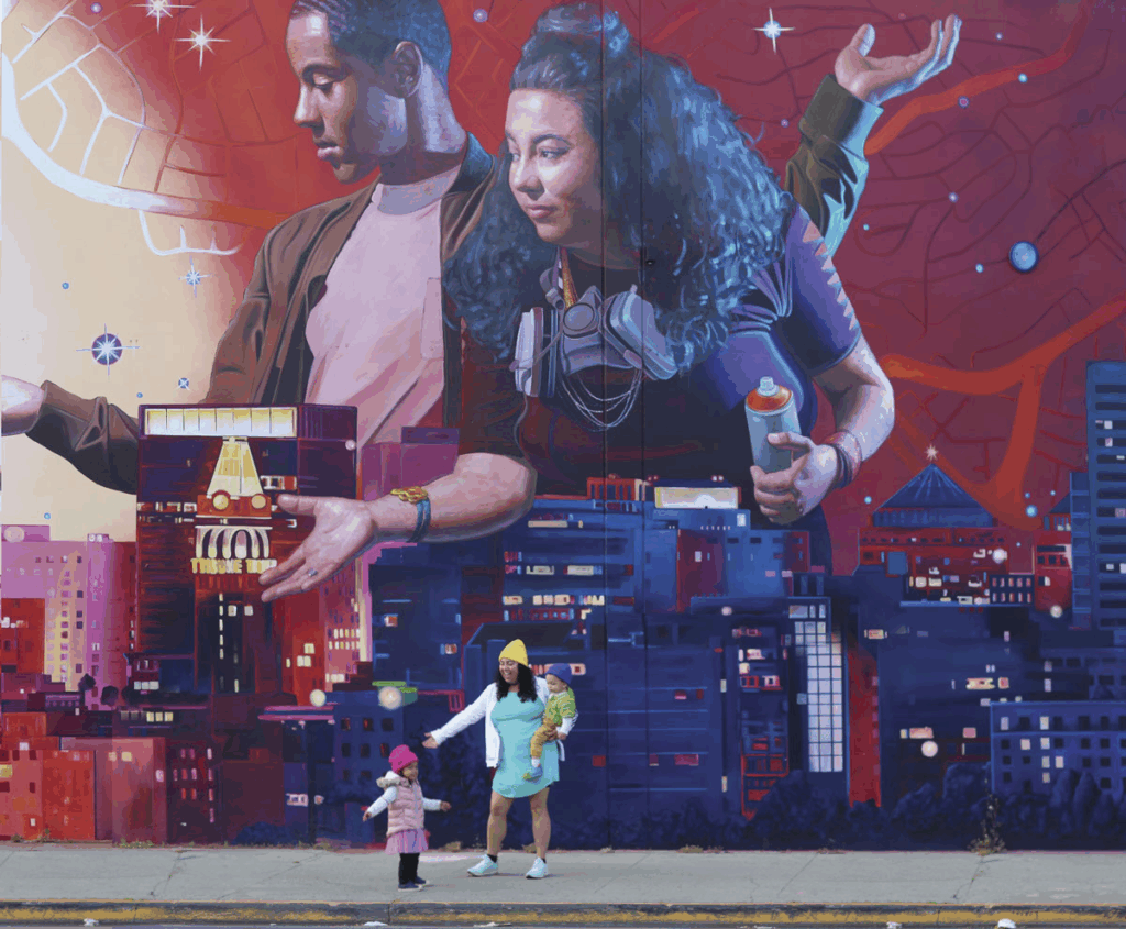 The Paint Lewis wall is just one of Espinoza’s prolific works. She also created a mural for the SF Giants, two Bruce Lee murals for the Chinese Historical Society Museum, and a mural of La Doña in the Mission in San Francisco. Most recently, Espinoza worked with the Eat. Learn. Play. Foundation, founded by Steph and Ayesha Curry, and Kaboom! to create new playgrounds for Oakland public schools. The first school Espinoza worked on, Franklin North Elementary School, was a particularly special project to Espinoza, a mother to a now six-year-old son and a seven-year-old daughter. “Having the personal experience of my daughter being at one of the schools was really cool because I told her when mommy’s not there with you at school, it’s like you’re wrapped in my love.” Since then Espinoza’s artwork has graced the walls of over a dozen other schools and some preschools as well. “Hopefully they’ll have a beautiful place for generations to come.”
