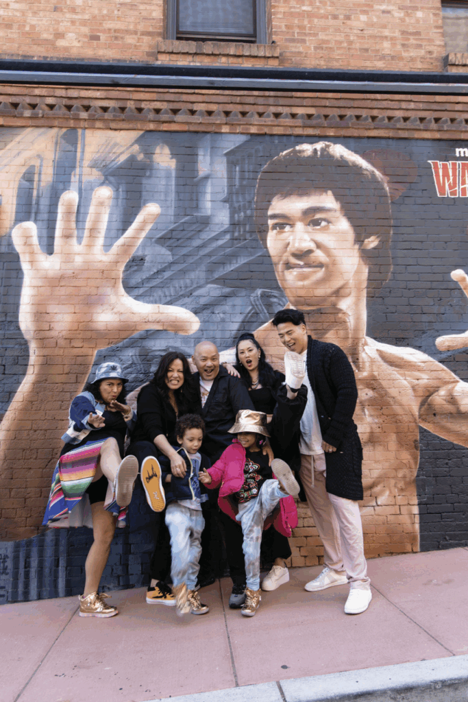 Bruce Lee Mural painted by AGANA and her mentor VOGUE @vogue_tdk, designed by Vogue TDK for ICU Art @icuart1 with Shannon Lee @therealshannonlee and the stars of Warrior @thatoliviacheng and @richtingworld og @warriornotofficial on @hbomaxes honoring the @brucelee legacy outside of the @wearebrucelee exhibit at the @chsamuseum in Chinatown San Francisco.