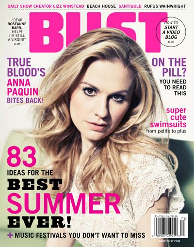BUST is turning up the heat this summer with an issue that’s on fire with fierce females! Our cover gal Anna Paquin takes a break from True Blood to give us the inside scoop on making cable’s sexiest show, indie-rock darling Victoria Legrand of Beach House shares her perfect summer soundtrack, Daily Show creator Lizz Winstead tells all in the season’s ultimate smart girls’ beach read, and much more!
