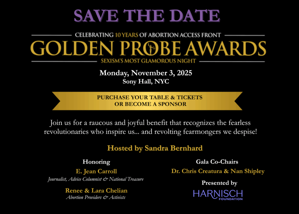 TEN YEARS, BABY!!! That’s a full decade of throwing down for abortion providers and building a badass army of activists like YOU from coast to coast. And to kick off this milestone? We’re going full glam with the return of the Golden Probe Awards—our unapologetically rowdy celebration of reproductive rights heroes.
