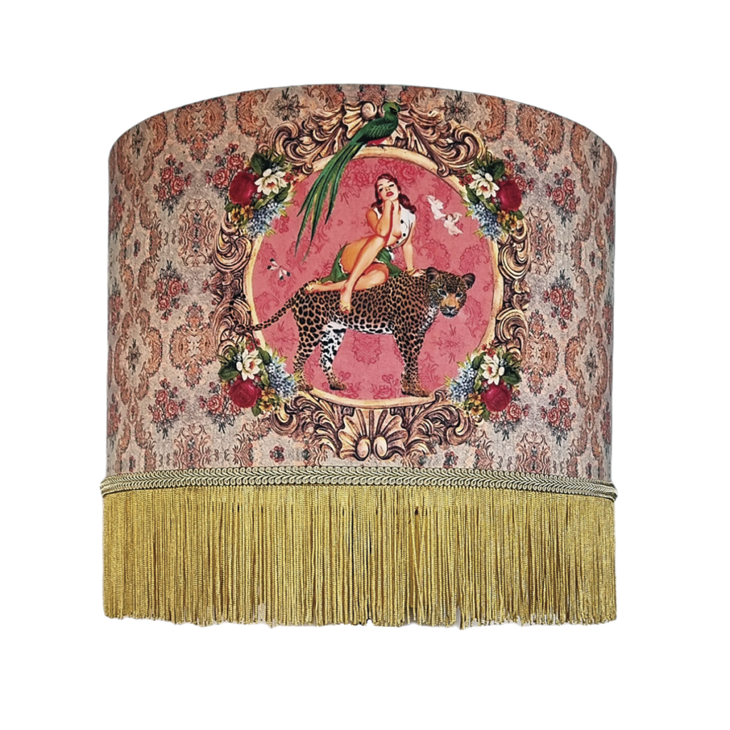 This handmade ornate fringe lampshade will brighten up any room. Finding a fringe shade at a thrift store can be a quest, and this one is the softest velvet and the design is tattoo goals. Small Alice Fringe Lamp, $114.72, queenkshades.etsy.com