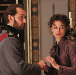 Much like the Academy voters, I am a total sucker for period dramas starring Keira Knightley. They’re not always great, but man, are they pretty. Joe Wright’s new adaptation seems like the hundredth version of Anna to make it to the screen, but it is instantly recognizable as one of the most original. Tom Stoppard’s screenplay sets most of the action on an actual stage that moves with the characters. It’s initially difficult to adjust to this conceit, but it makes so much sense in conjunction with the novel’s themes that it eventually becomes almost unnoticeable. The constant flux of the sets also serves to establish a quick, driving pace that keeps the film from feeling too stiff or boring.