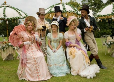 Bret McKenzie (Flight of the Conchords) charms in his role as Jane’s love interest, and Russell’s portrayal of a gal with a nerdy literary fixation will remind viewers of the quirkiness we adored her for in Waitress. Yet her character is hardly revolutionary; the hefty chunk of her life she’s spent fantasizing about Mr. Darcy recalls the mooning vapidity of Twilight’s Bella Swan. Rather than acting as agents of their own sexuality, the women who arrive at Austenland behave as though they haven’t been laid since the 1800s. Georgia King (The New Normal) and Jennifer Coolidge (Legally Blonde, American Pie) play two such lovelorn guests, and raise their cleavage to theatrical heights in their supporting roles (King as a drama geek, and Coolidge as a rich and raunchy American).