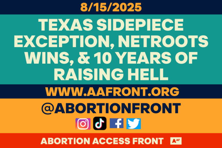 It’s Friday! AAF is BACK from training up progressives on abortion activism at Netroots Nation, and we’re ready to bring you what’s going on in the Abortionsphere this week before we take off for a much-needed summer break!