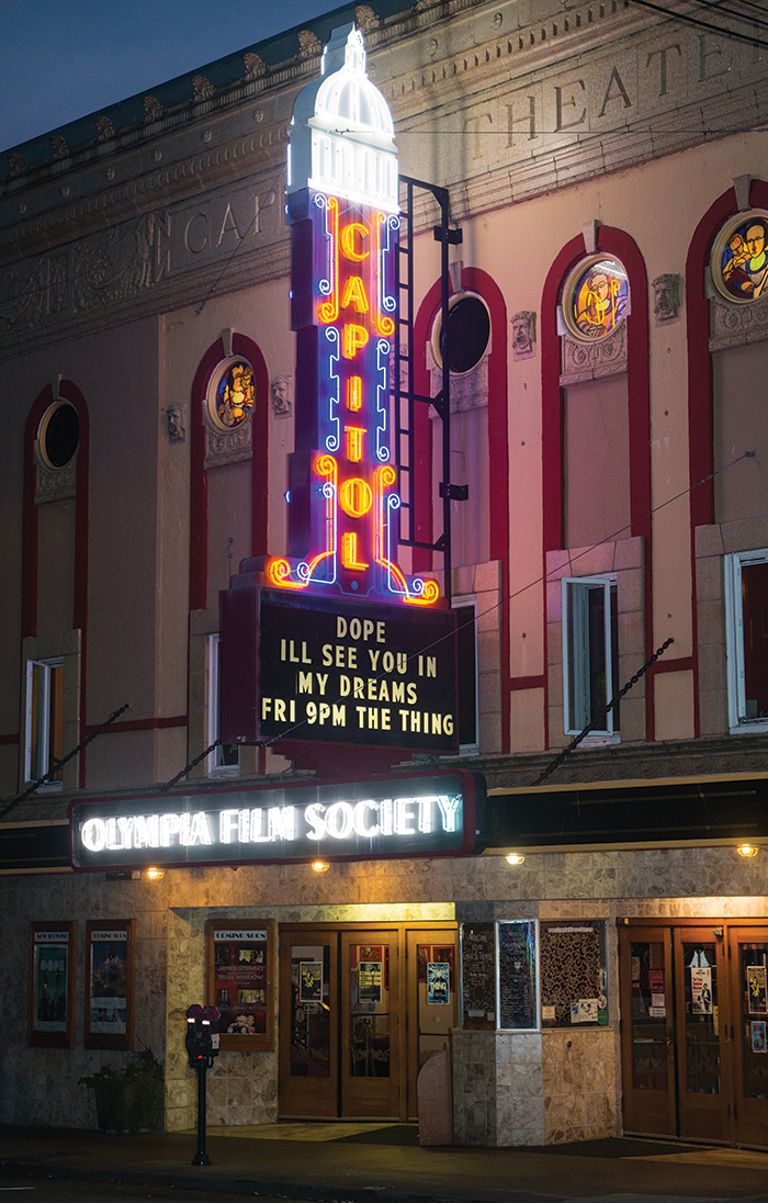 The Olympia Film Society (206 5th Ave. SE), located in the historic Capitol Theater, has been bringing under-represented film, music, and arts to the community as a nonprofit organization since 1980. Olympia’s rich history can be traced back to the many Native tribes that occupied this mountainous land prior to colonization—The Longhouse Educational and Cultural Center at The Evergreen State College (2700 Evergreen Pkwy. NW) preserves the arts and traditions of these indigenous peoples through exhibitions, residency programs, and performances for and by Native artists. Olympia’s thriving music scene upholds the community’s tradition of employing nearly every bar, vacant building, and downtown basement as a music venue. When you come through, check out these bands, wherever they may be playing: political post-punks Underpass, the queer/feminist/trans G.L.O.S.S. (Girls Living Outside Society’s Shit), and the female-fronted punk group Vexx, to name a few.