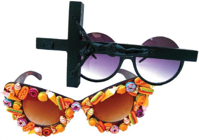 Judas Peekaboo Glasses, $65, and Snack Attack Cats Meow Sunglasses, $68, gasolineglamour.com