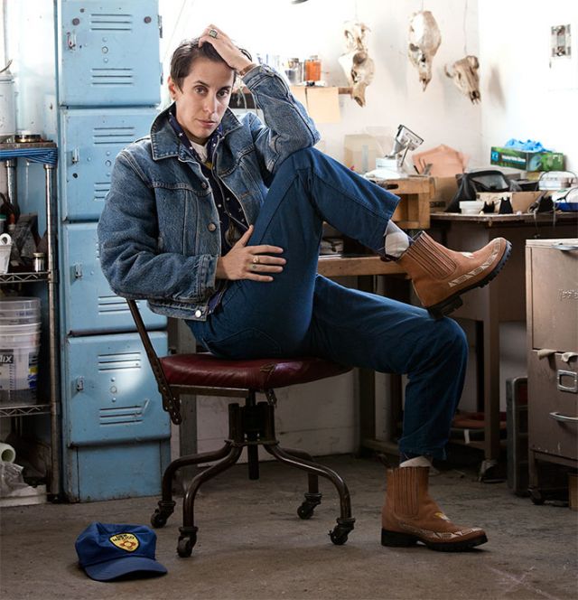 I can’t just go into a store and buy stuff off the rack because the women’s stuff that really fits my body is darted, which I can’t do. And then the men’s stuff is all too big. So I found that I could buy old things and tailor them to my style. Being an artist, I make a lot of my own stuff.