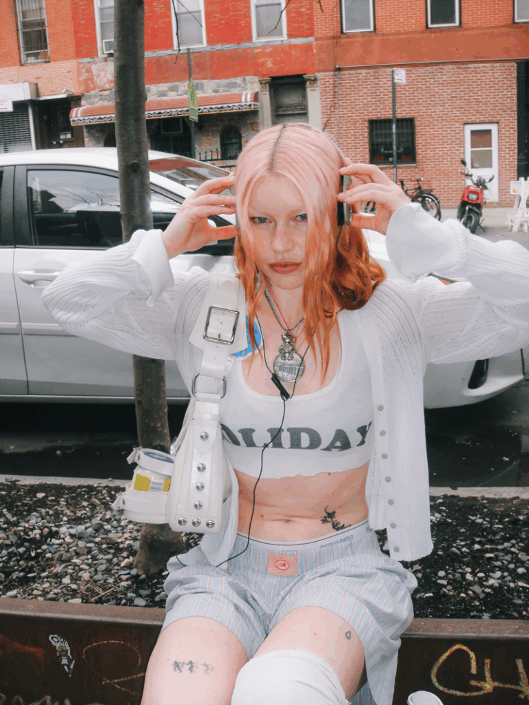 Post-punk ditty “jennifer’s body was inspired by the cult classic film and the understated (depending on who you ask) queer dynamic between its two main characters. In it, the band echoes sweetly over spiraling guitar parts and steady drumming, “I like you, can’t you see I’m obsessed with you?” and “Every day starts and ends with you.” “Collectively as a band, we love horror,” Teasdale says of the song’s origins. “We watch a lot of horror films. And Jennifer’s Body is just the most iconic lesbian horror film. I had the privilege of watching it as a straight person and then a few years later, watching it as someone who’s had a queerpiphany,” she winks in a Valley Girl accent. “I saw it in a whole different light. The first time I saw it, I was like, Yeah, that’s cute. And then [when I watched it later] it was even more impactful.”