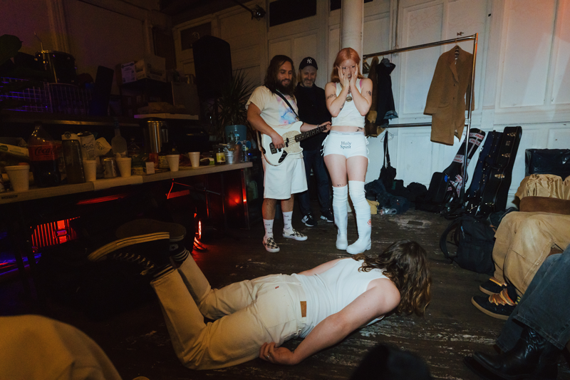 It’s a rain-soaked night in Brooklyn, and Market Hotel—arguably Bushwick’s tiniest, sweatiest club—is bursting at the seams as 500 (or more) of the city’s fortuitous indie rock fans are shoulder to shoulder, happy they made it into the last-minute surprise show. The air is thick and steamy, jittery with electricity, and there’s no time to debate if the perspiration on your arms is yours or someone else’s: Wet Leg, the highly acclaimed, could-play-a-venue-countless-times-this-size five-piece from Isle of Wight are about to take the small stage in the misshapen room—blessing us with an underplay, and a first taste of their second album moisturizer live.