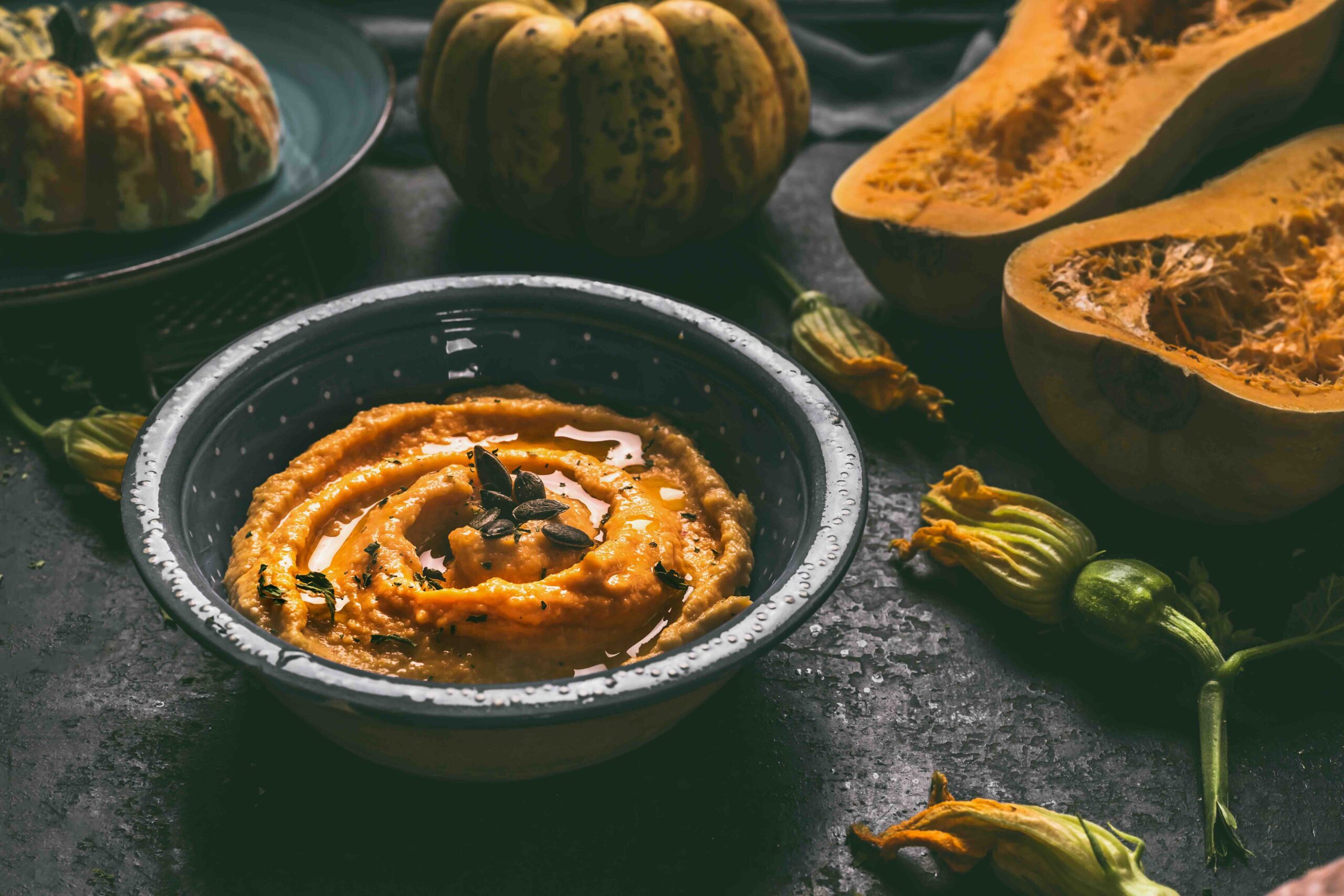 I may never know what I was thinking when I, in some sort of fugue state, bought a half a case of canned pumpkin, but now it’s spring, and those cans have got to go. Inspired by my favorite hummus brand, Little Sesame, I like to whip that pumpkin puree into a silky homemade hummus topped with my favorite chili crisp.