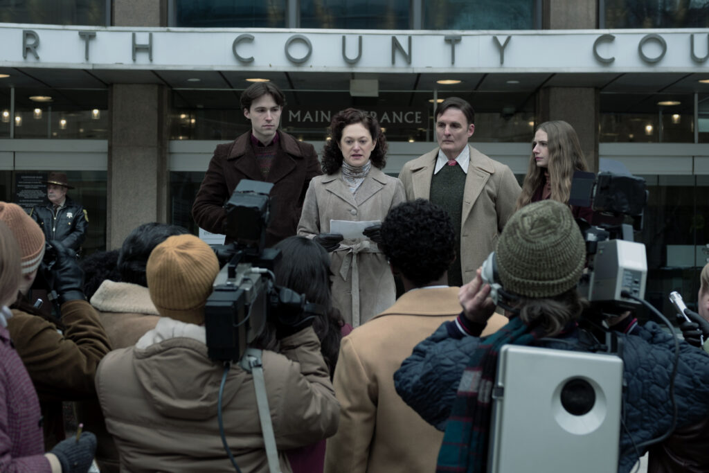 Marin Ireland as Elizabeth Piest and the cast of Devil in Disguise: John Wayne Gacy. Courtesy of UCP, a division of Universal Studio Group